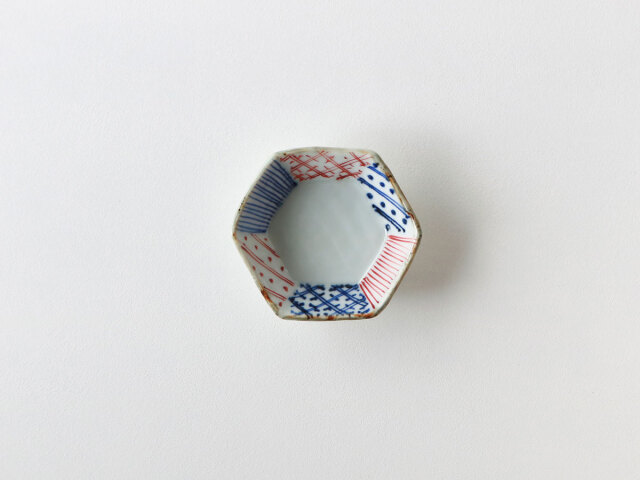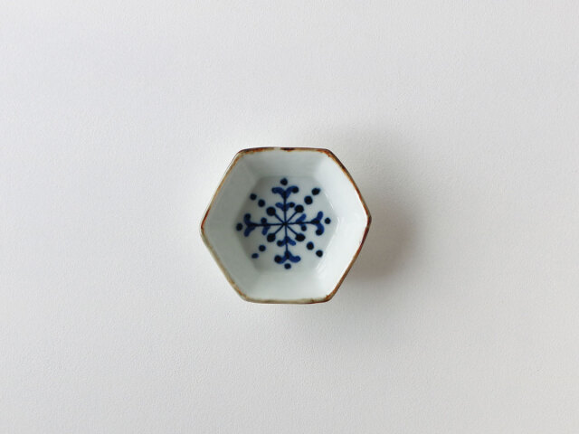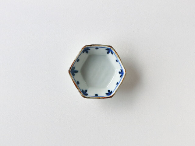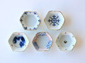 【絵柄】A:サビ点草花紋、B:染付花菱、C:色絵地紋、D:染付輪花紋、E:見込草花紋