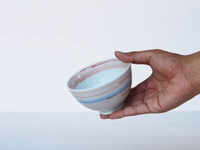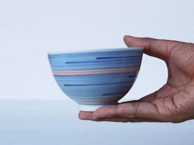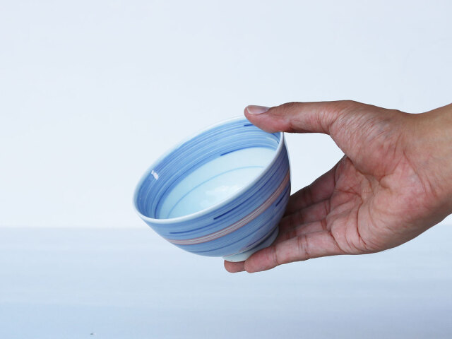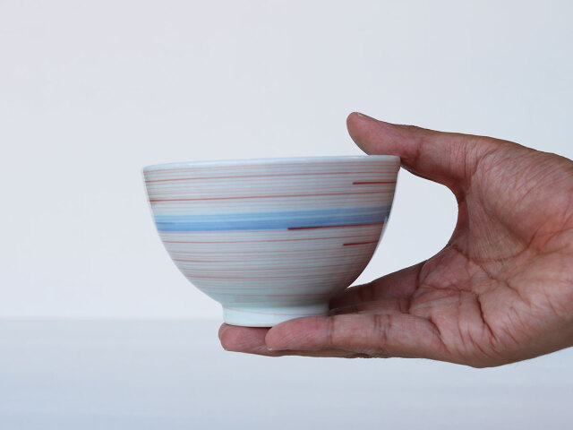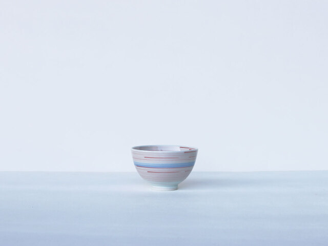 ノイズのような強弱のある線が綺麗な波佐見焼のお茶碗。