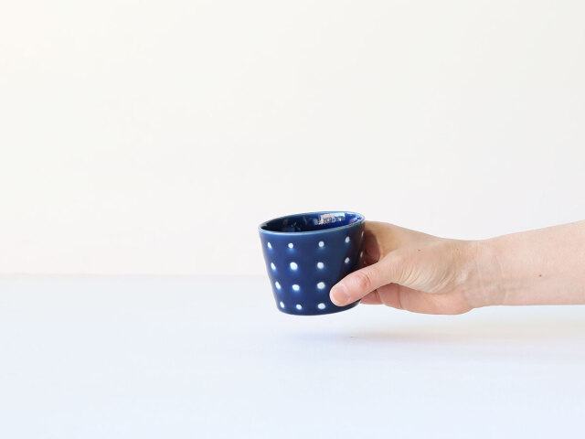 つるつる、ぽこぽこしたドットがあしらわれたそばちょこ。