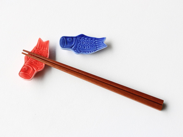 釉薬の赤と青が鮮やかな可愛い鯉のぼりの箸置き。