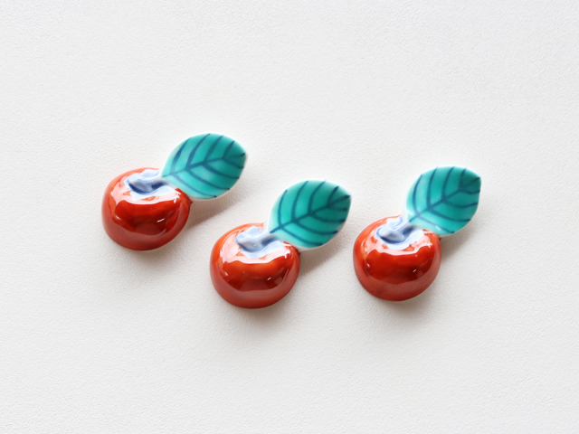 オレンジ色の実と青緑色の葉のコントラストがとても綺麗な柿の箸置き。