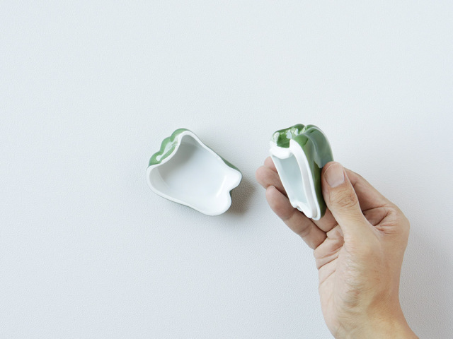 色、かたちともにリアルすぎるピーマンです!中に何を入れようかな…コンビーフを入れたらピーマンの肉詰めっぽくなるかな〜と想像が膨らみます。