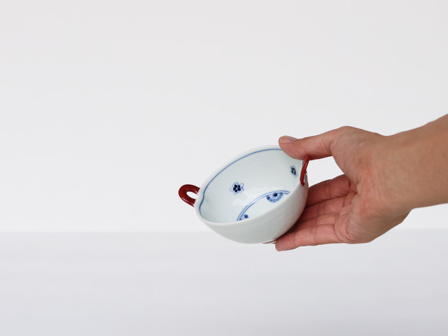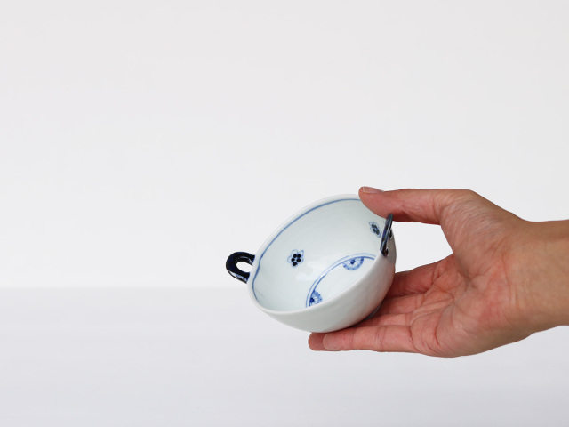 ころんとしてフォルムがかわいい取っ手付きの小鉢です。