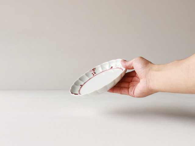 リム部分にあしらわれた菊割(きくわり)と絵柄は、乗せた料理を上品に引き立ててくれます。