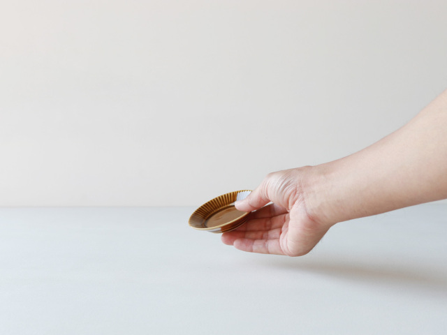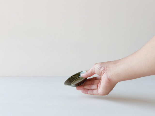 キャメル釉、オリーブ釉がつるんと綺麗な有田焼の豆皿