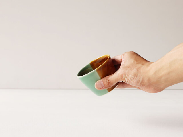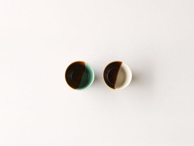 アメ釉とクリームがかったホワイト、アメ釉と深みのグリーンのかわいい2トーンカラー!そばちょこという名前がついていますが、カップや湯呑として使っても野菜スティックをたてて食卓に並べてもOK!