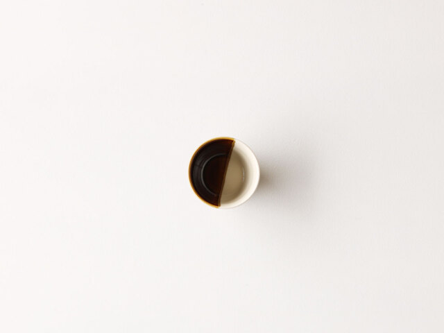 こちらは波佐見焼のアメ釉 掛け分けのそばちょこです。