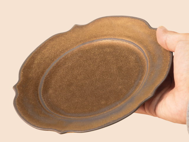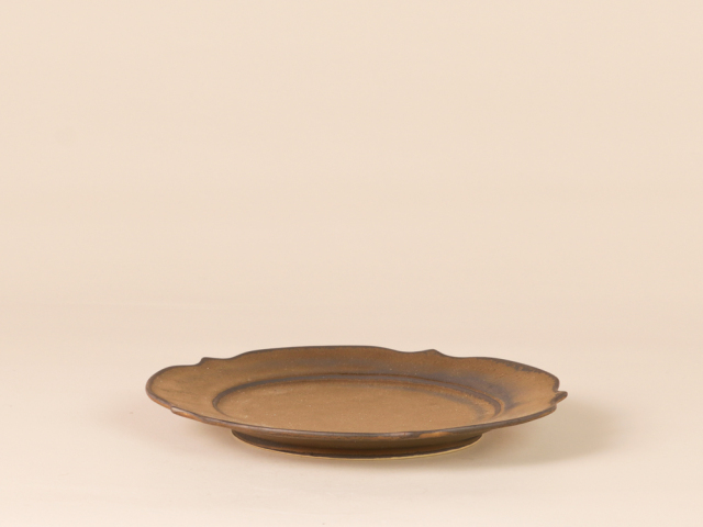 金属のようなゴールドの釉薬がかっこいいプレートです。