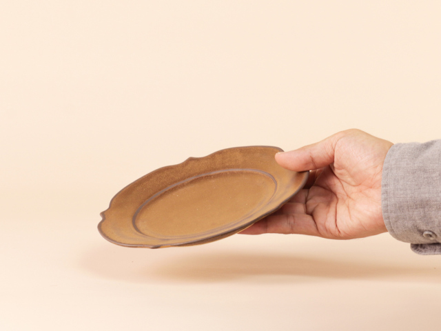 お花のようなリムとゴールドの釉薬がマッチしたプレート。