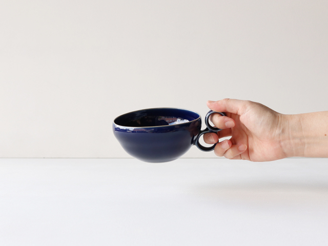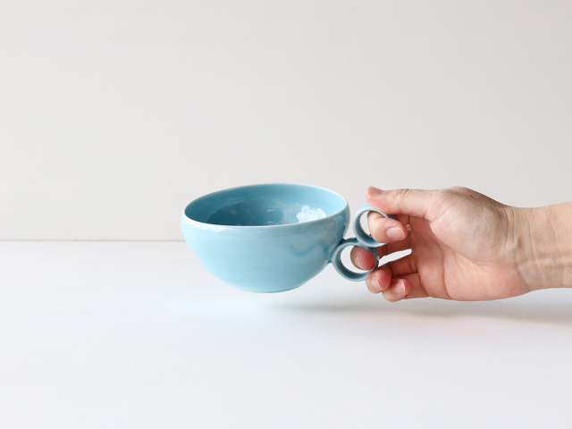 ビビッドな色合いのスープマグ。