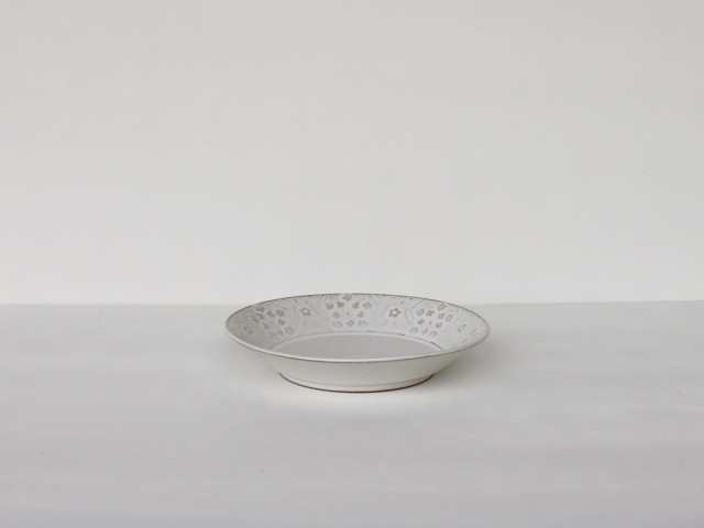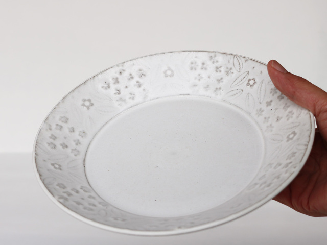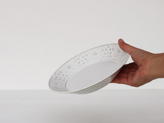 レースフラワーをモチーフにロクロ型打ちにて成形してあります。
