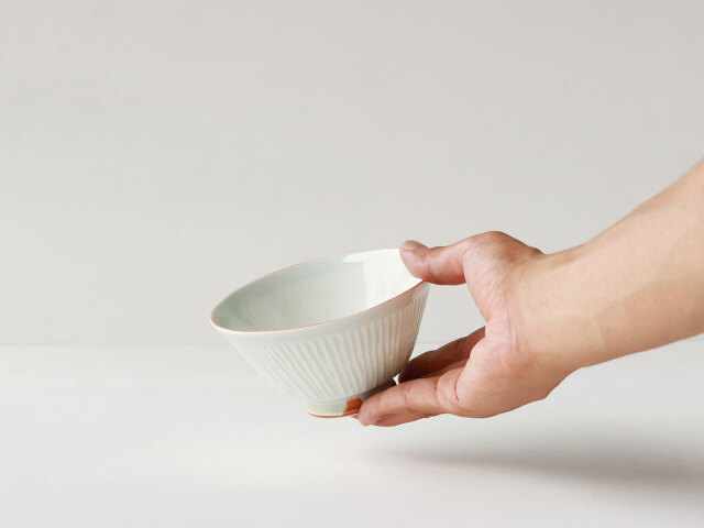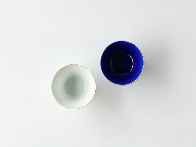 【製法】型成型、しのぎ、青白磁、瑠璃釉薬、フチサビ