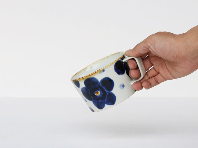 翔藍花・流れ水玉 スープカップ 波佐見焼