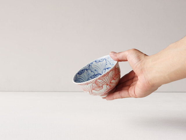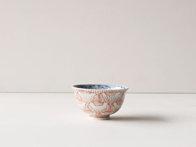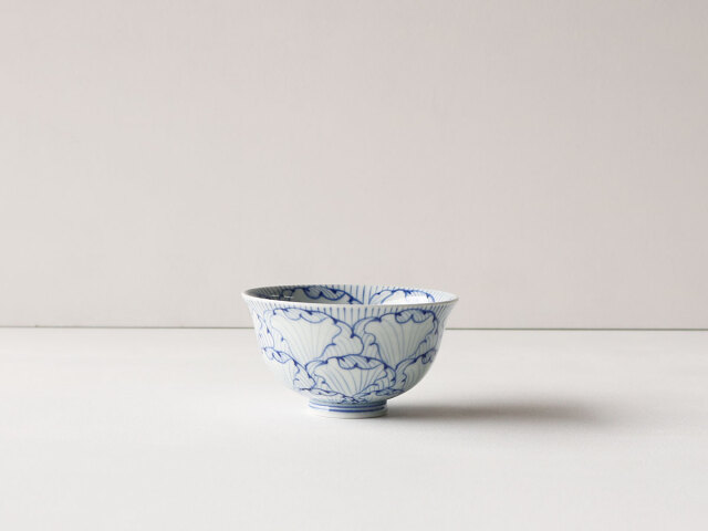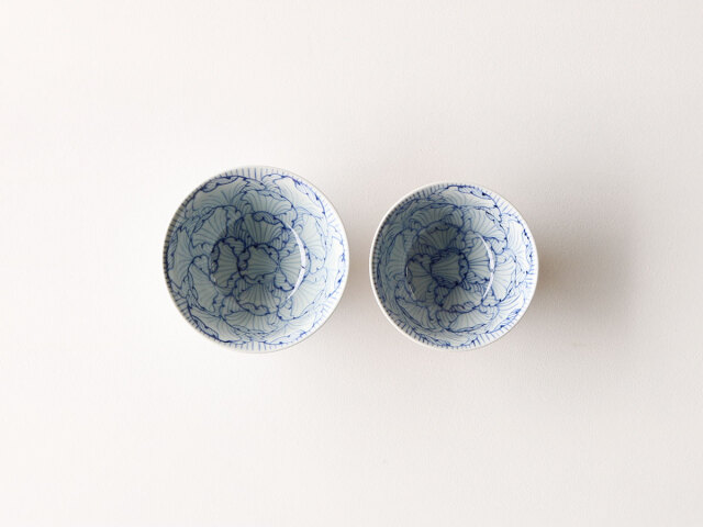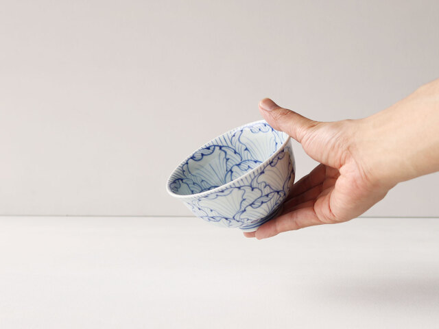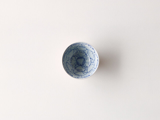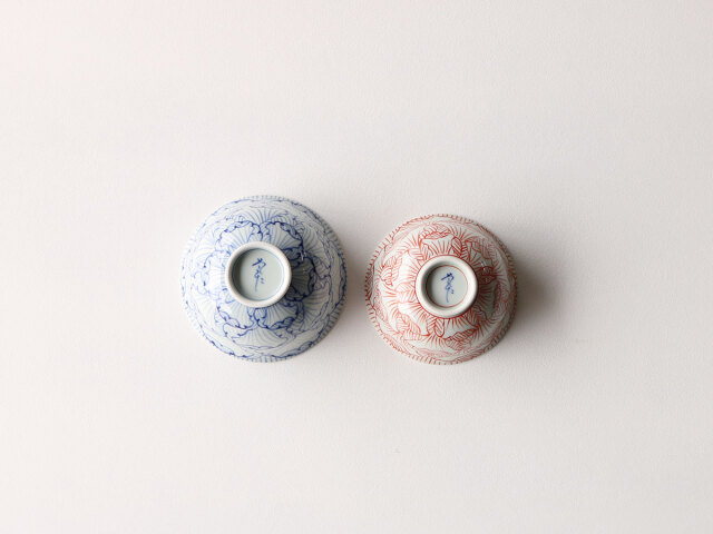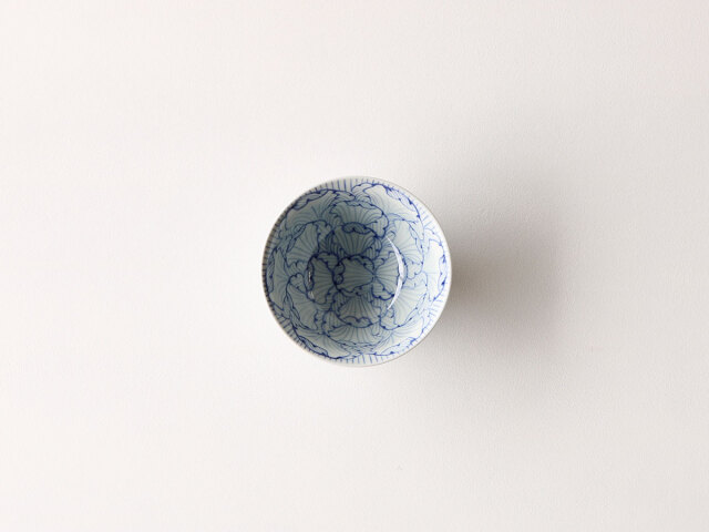お茶碗の内側にも、外側にも、埋め尽くすように描かれた花弁紋は