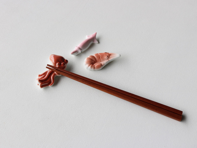 エビ、タコ、イカ、フグ、ヒラメ、ムツゴロウの有田焼箸置き