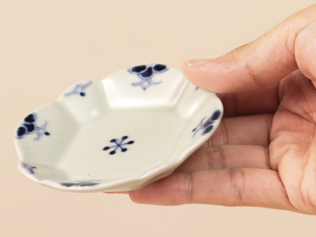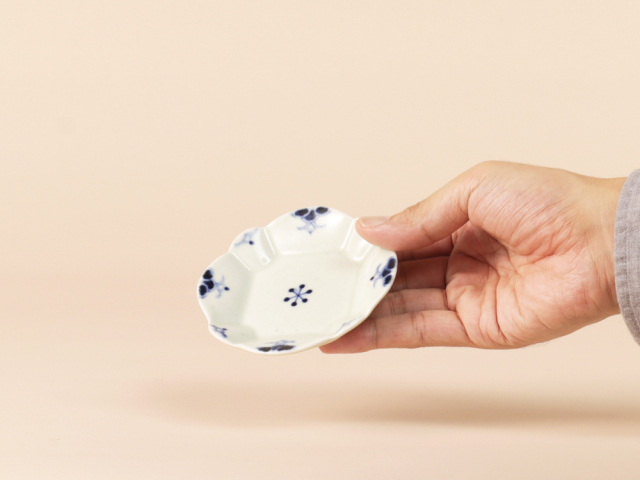 お花のようなかたちがかわいい波佐見焼の小皿です。