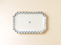 瓔珞紋(ようらくもん)とは、古代インドの貴族が身に着けた、珠玉や貴金属を編んだ装身具を模様にしたもの。 瓔珞紋のうつわは赤絵で華やかなものも多いですが、染付一色のものも普段使いしやすくておすすめです。 四角い焼皿は一枚あると重宝します!