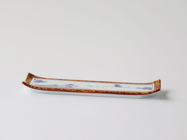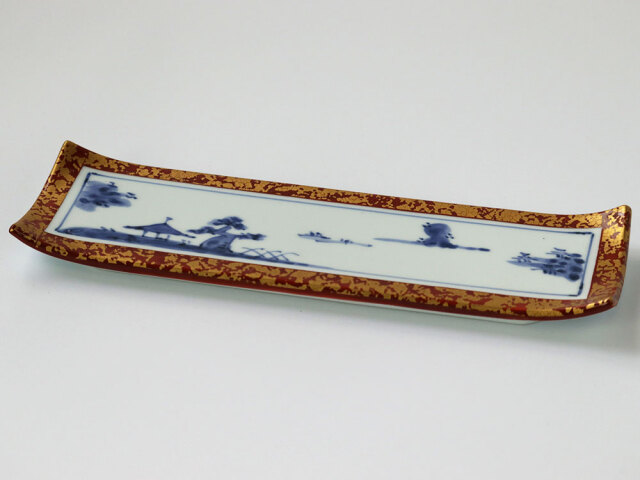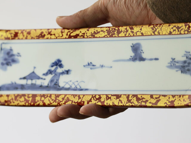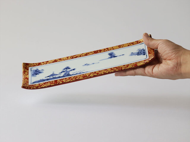 手描きの絵付けで描かれたゆったりした風景。キラキラした額に入れられた絵画のようなうつわです。