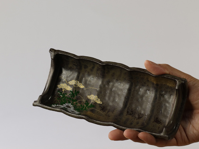 竹のかたちに黒釉、金彩…。なかなか他にない渋い一品です。特別な日の食卓に、何を盛ってもスペシャルな雰囲気に!