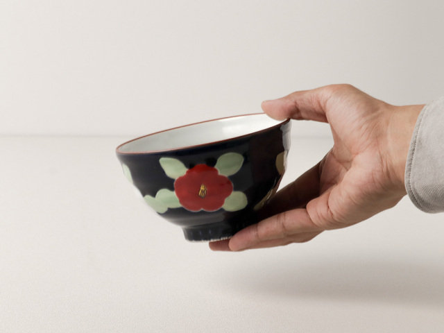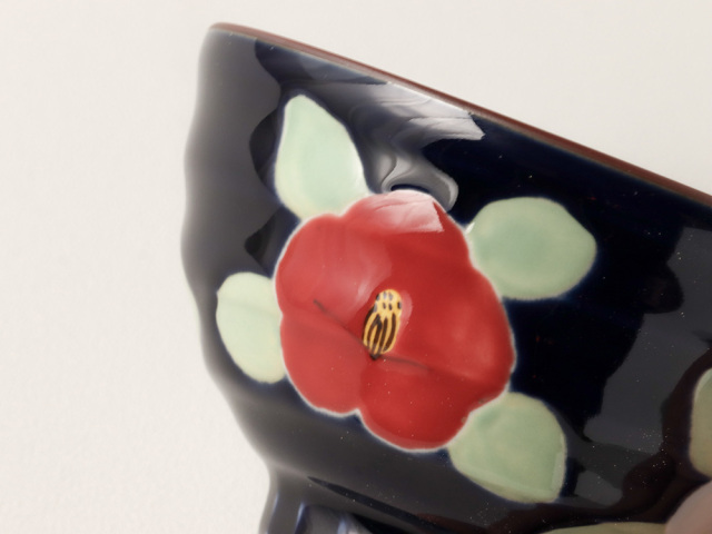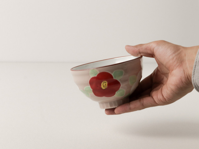 大きく描かれた椿がかわいいお茶碗