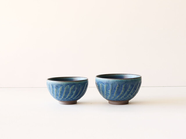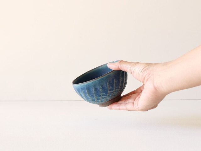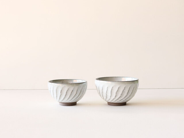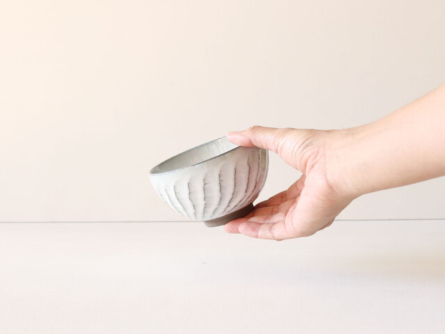 うつわ全体を包み込むようにねじりしのぎがほどこされています。