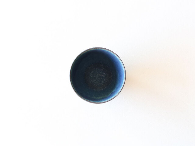 陶器のあたたかみのある質感と、窯変(ようへん)と言われる窯の内部で生じた色の変化・釉薬の濃淡が目をひく陶器のお茶碗です。