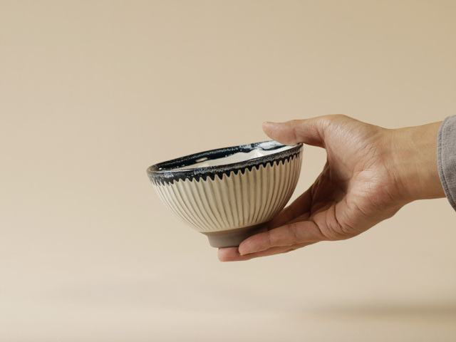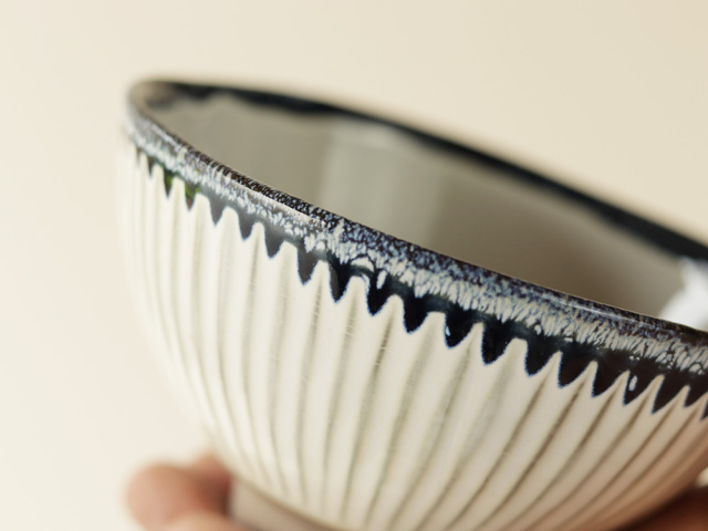 しのぎ 釉流し お茶碗 波佐見焼